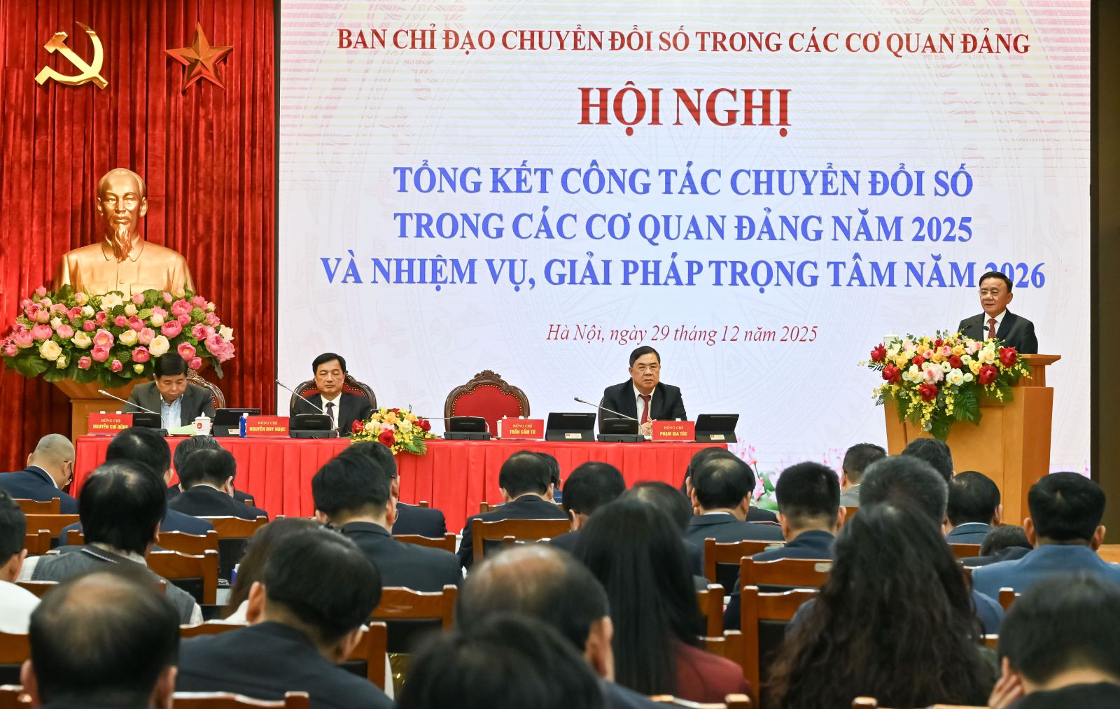 Ngày 29/12/2025, Ban Chỉ đạo về chuyển đổi số trong các cơ quan Đảng (viết tắt là Ban Chỉ đạo) đã tổ chức Hội nghị tổng kết công tác năm 2025 và nhiệm vụ, giải pháp trọng tâm năm 2026. Sau khi nghe báo cáo của Văn phòng Trung ương Đảng và các ý kiến tham luận, thảo luận tại Hội nghị, Đồng chí Thường trực Ban Bí thư, Trưởng Ban Chỉ đạo kết luận như sau: